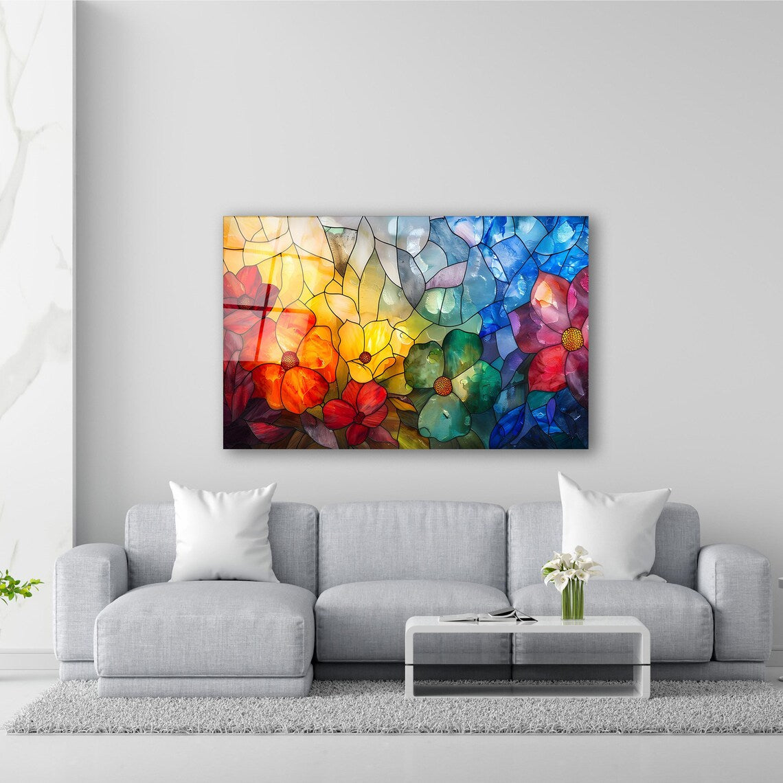 Стъклените картини представляват луксозна декорация, която подчертава уникалния и модерен аспект на помещението, в което се намират.